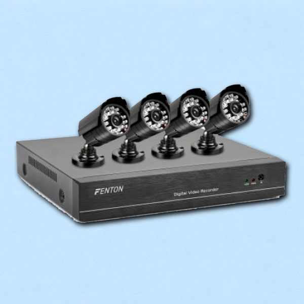 Kit videosorveglianza fai-da-te cablato con DVR e 4 telecamere: registra su memoria/disco, supporta visione notturna IR e controllo da monitor/TV (e spesso da app via rete). Soluzione stabile e semplice, ideale per casa o negozio.
