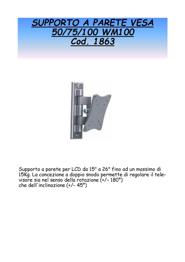 SUPP.PARETE VESA 50/75/100 WM100 - Cod. 1863