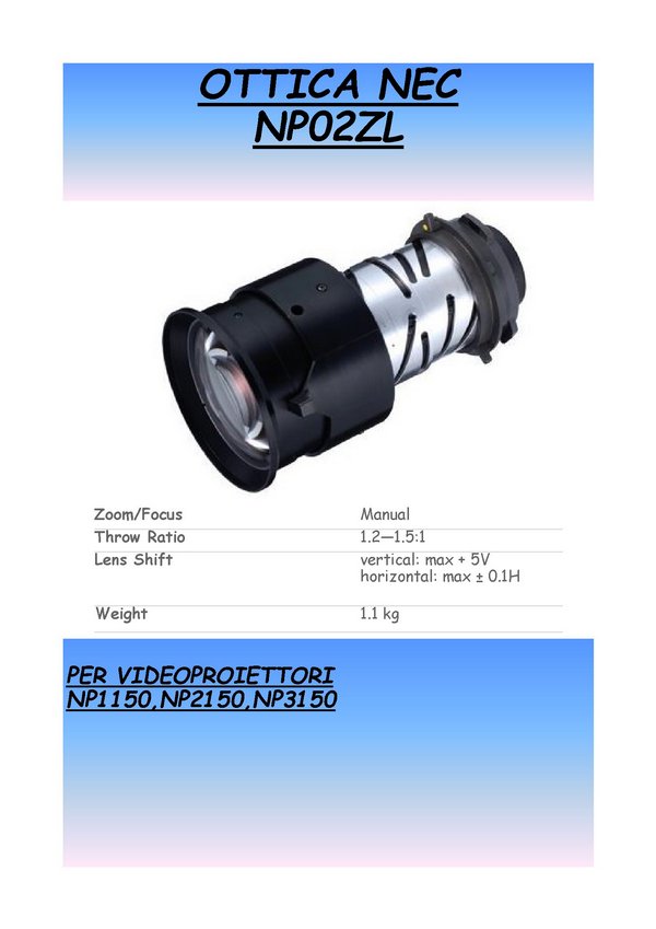 OTTICA NEC NP02ZL, EX DEMO, PER VIDEOPROIETTORI LCD NEC NP1150, NP2150 e NP3150